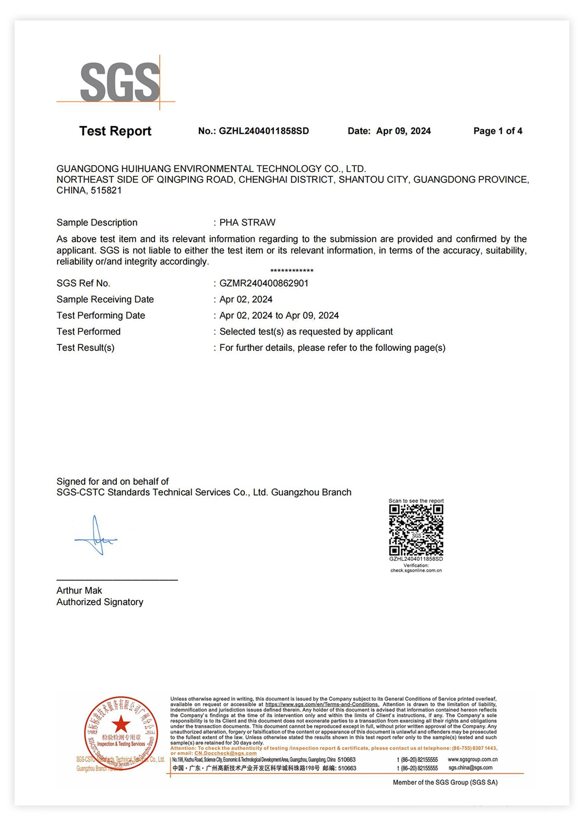 PHA Straw Food Safety Contact Test